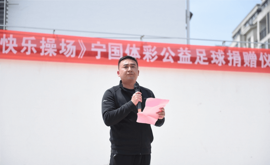 本次活动由宁国体彩爱心业主捐赠爱心资金(包括足球教学器材和全年外聘足球教练教学课时费),在宁国鼎湖小学开展年度公益性质的校园足球普及活动,宣传推广校园足球文化,开幕仪式中进行体彩业主公益足球捐赠仪式,现场请体彩业主代表进行足球公益物品捐赠,金义坤校长代表鼎湖小学接收捐赠。