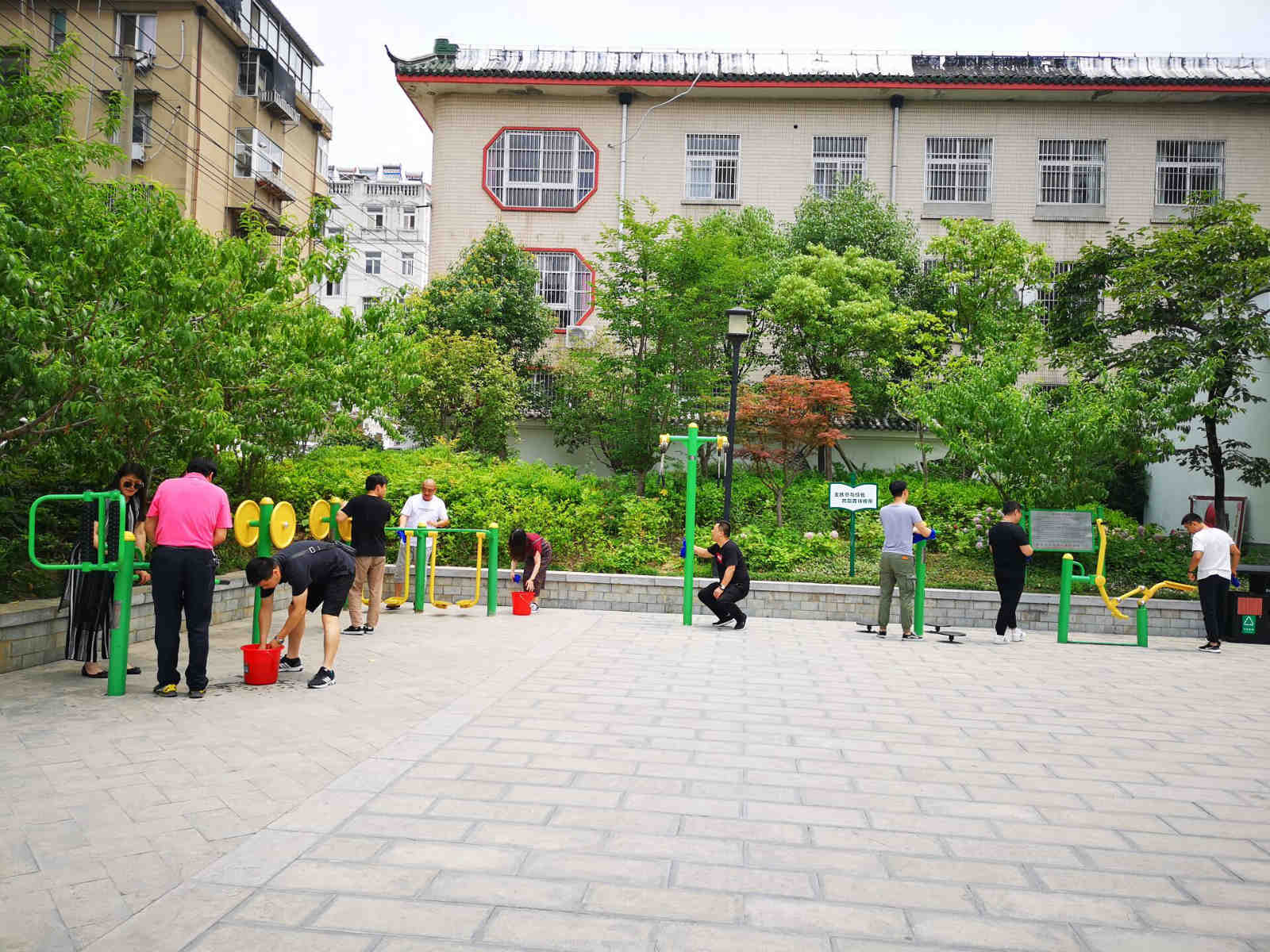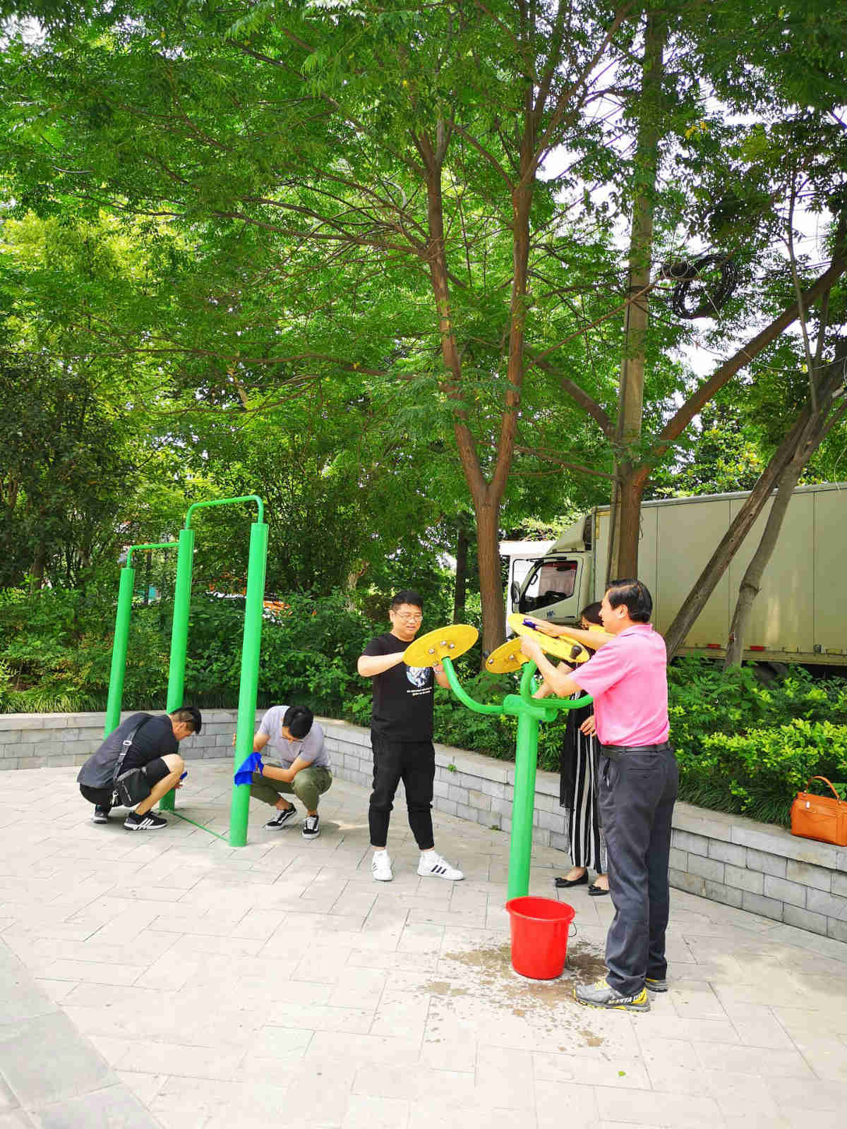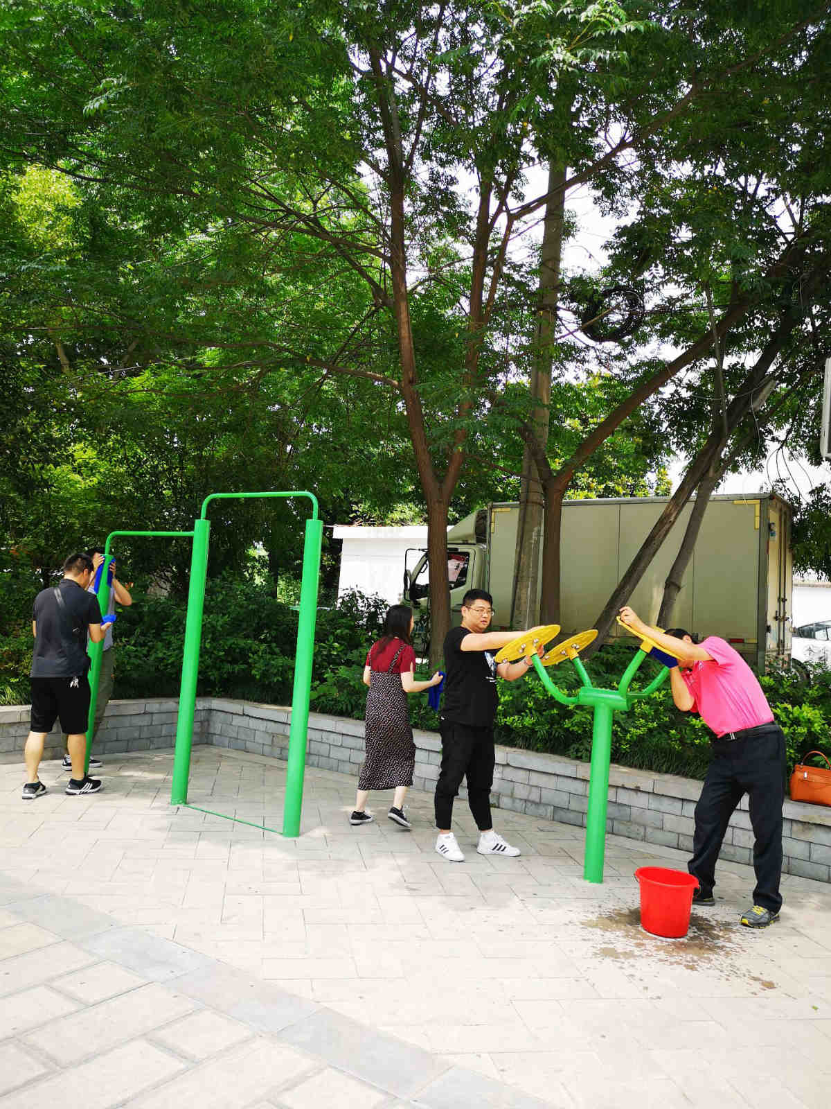 近年来,滁州市教体局为了推动全市城乡居民健身活动的开展,在许多社区、公园内建设了大量的"全民室外健身器材"。这些由体育彩票公益金捐赠的室外健身器材的普及和推广为老百姓健身带来了极大的便利。但是,因为缺少定期清洁保养,部分体育器材脏了破了,影响居民健身使用。