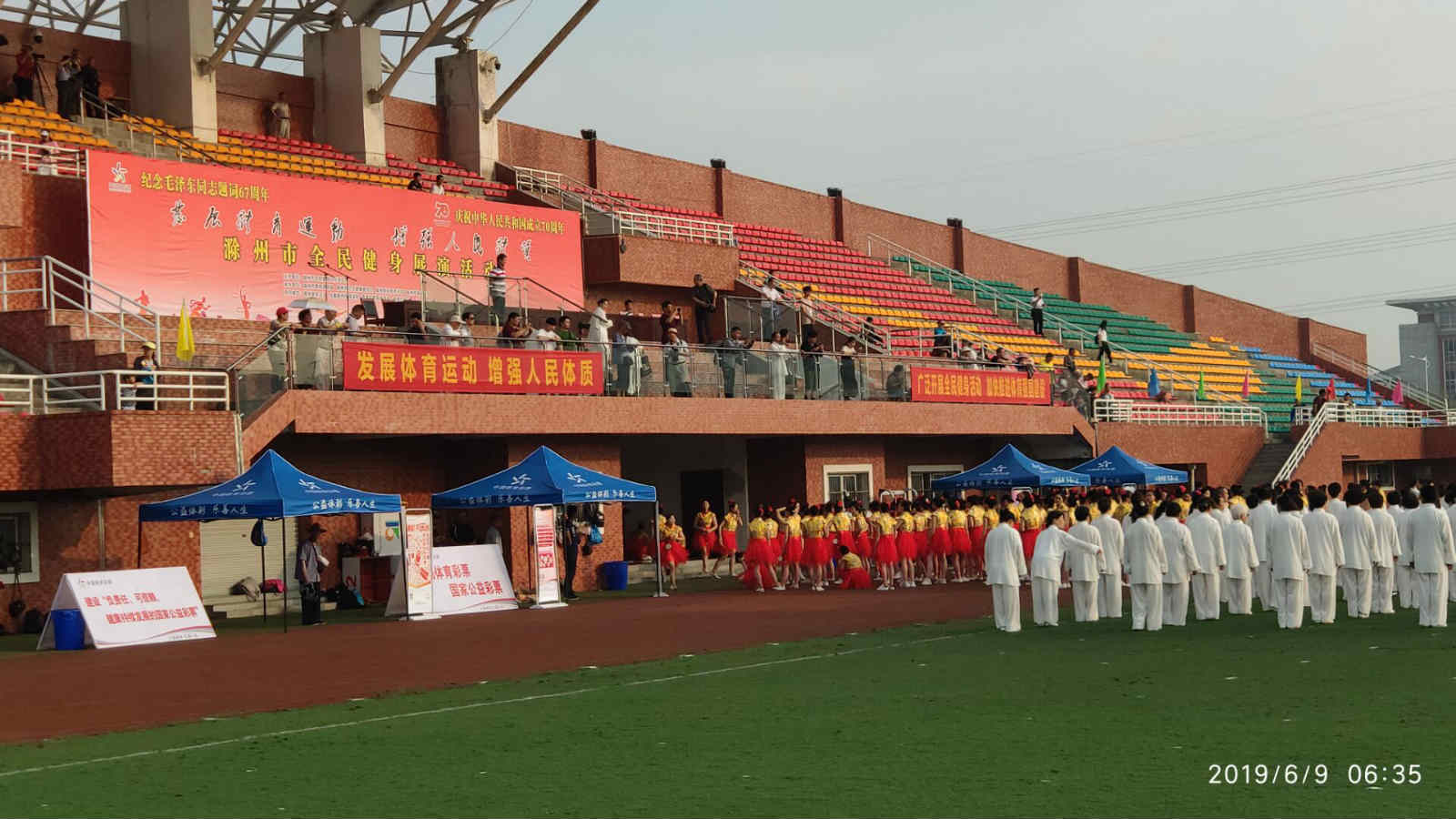 2019年6月9日上午,由滁州市全民健身委员会主办,滁州市教育体育局承办的纪念毛泽东题词67周年全民健身展演活动在滁州市技术学院隆重举办。