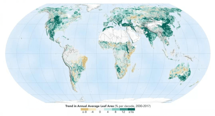 近期美国航天局(NASA)公布的相关资料显示,在过去的17年时间里,中国与印度主导了地球变绿。