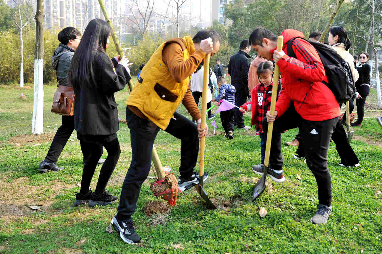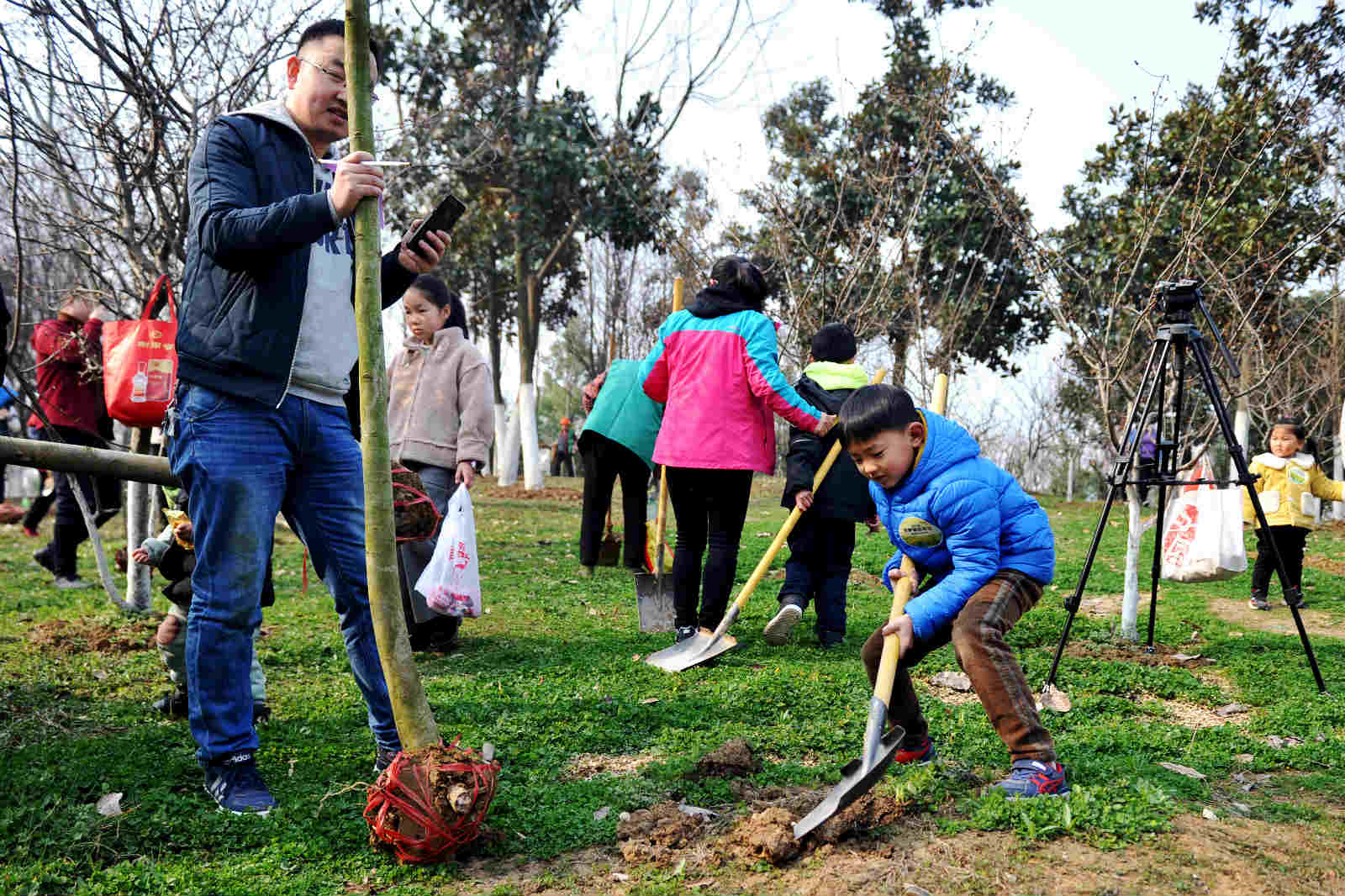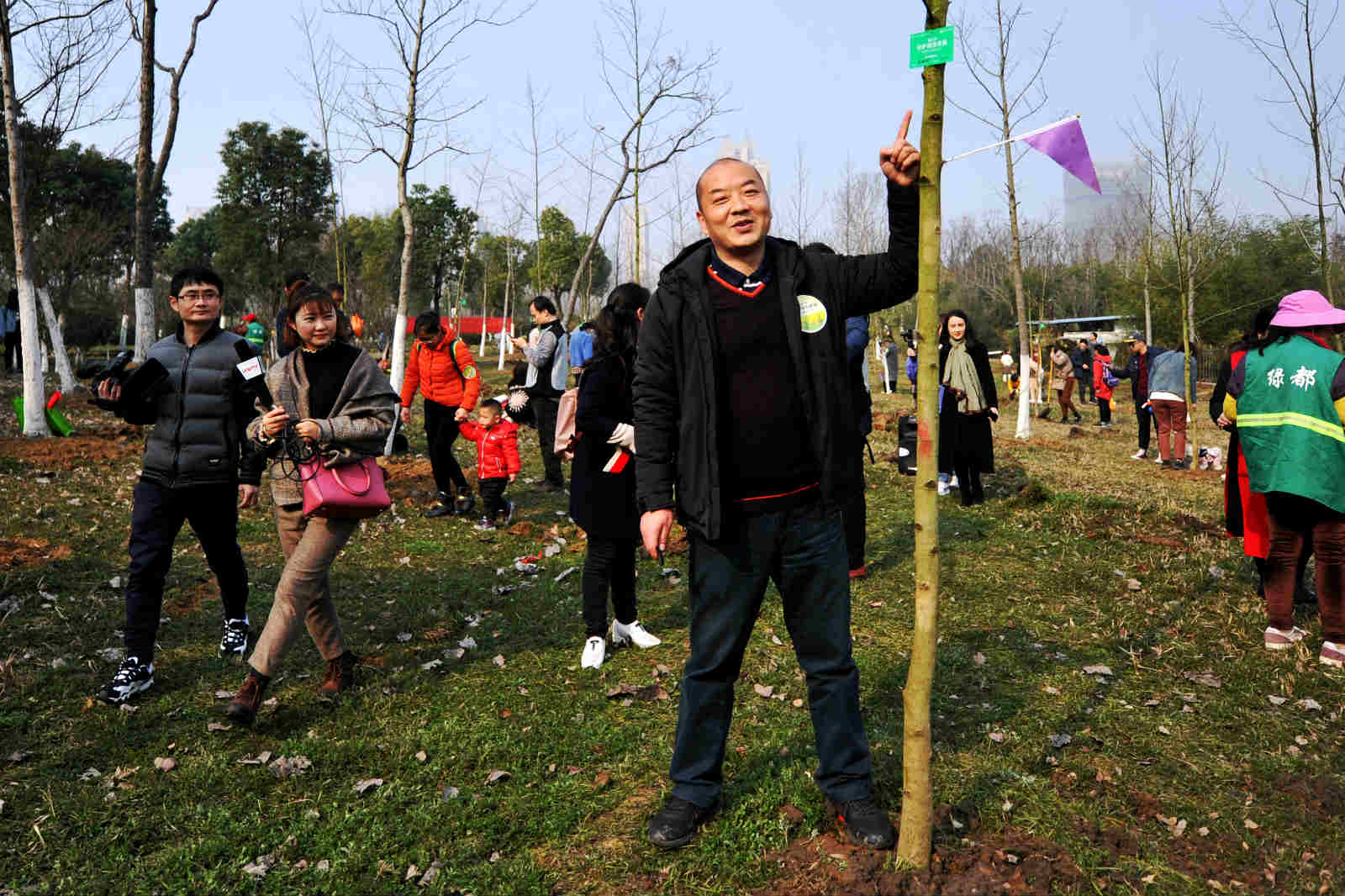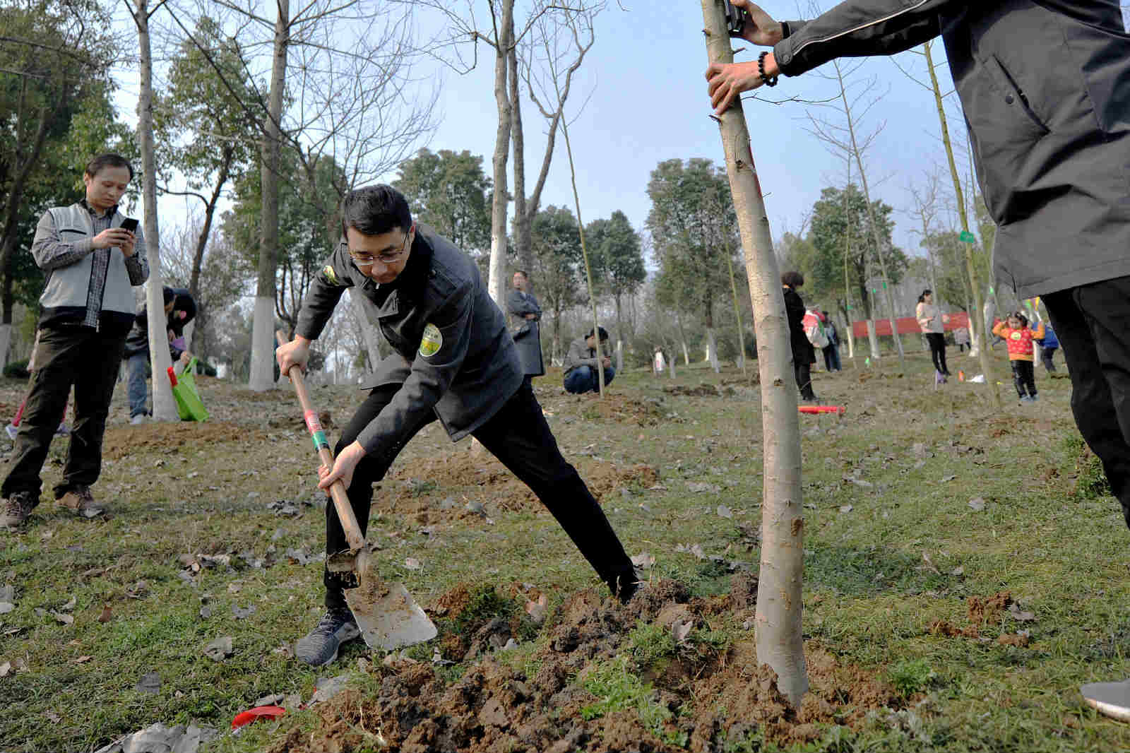 现场参加活动的市民很多是和自己的孩子一起,挖坑、铲土、浇水,栽上树苗,尽管鞋上沾满泥土,额头布满汗水,但孩子们脸上都挂着笑容,心里面也一定播下了绿色的希望。