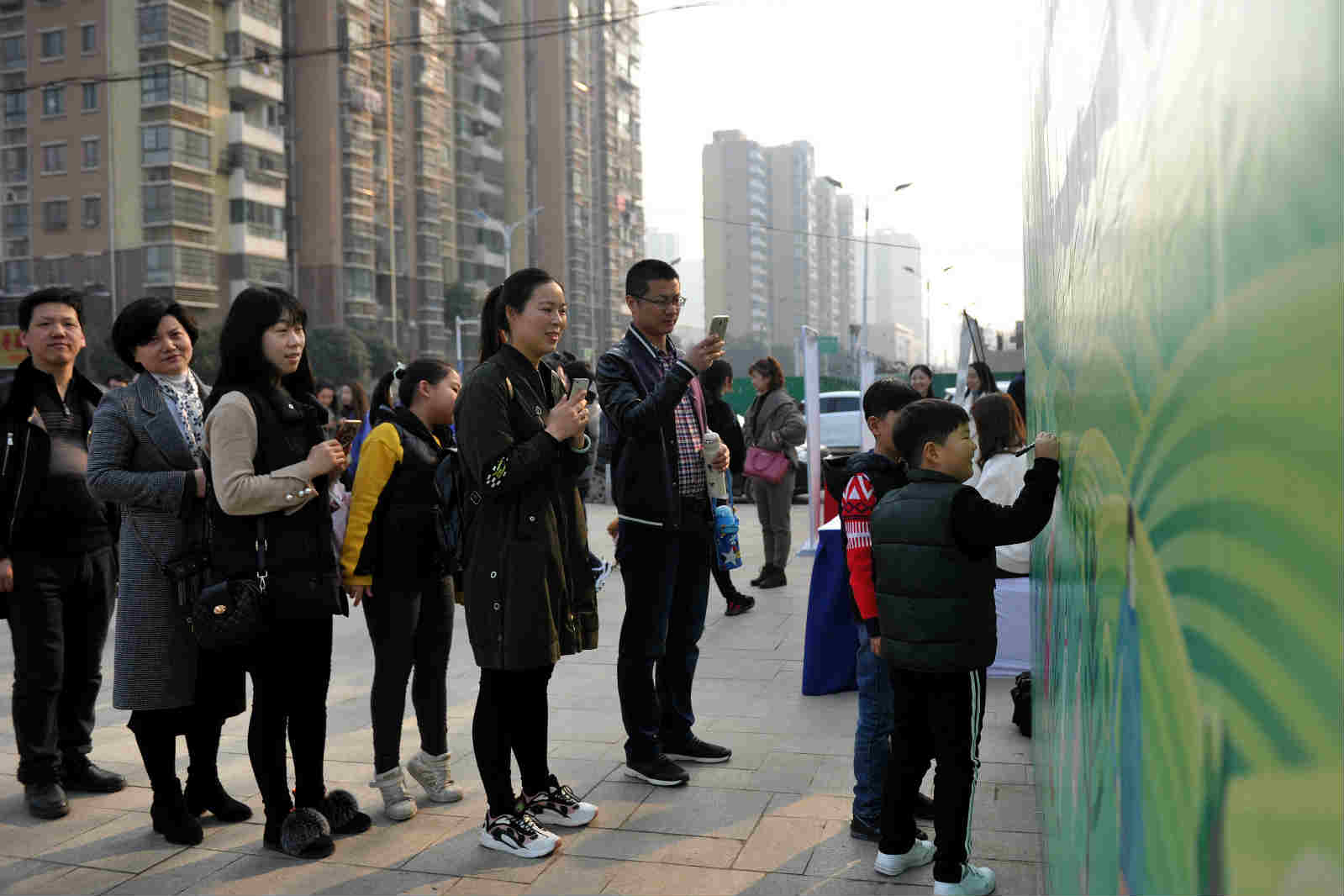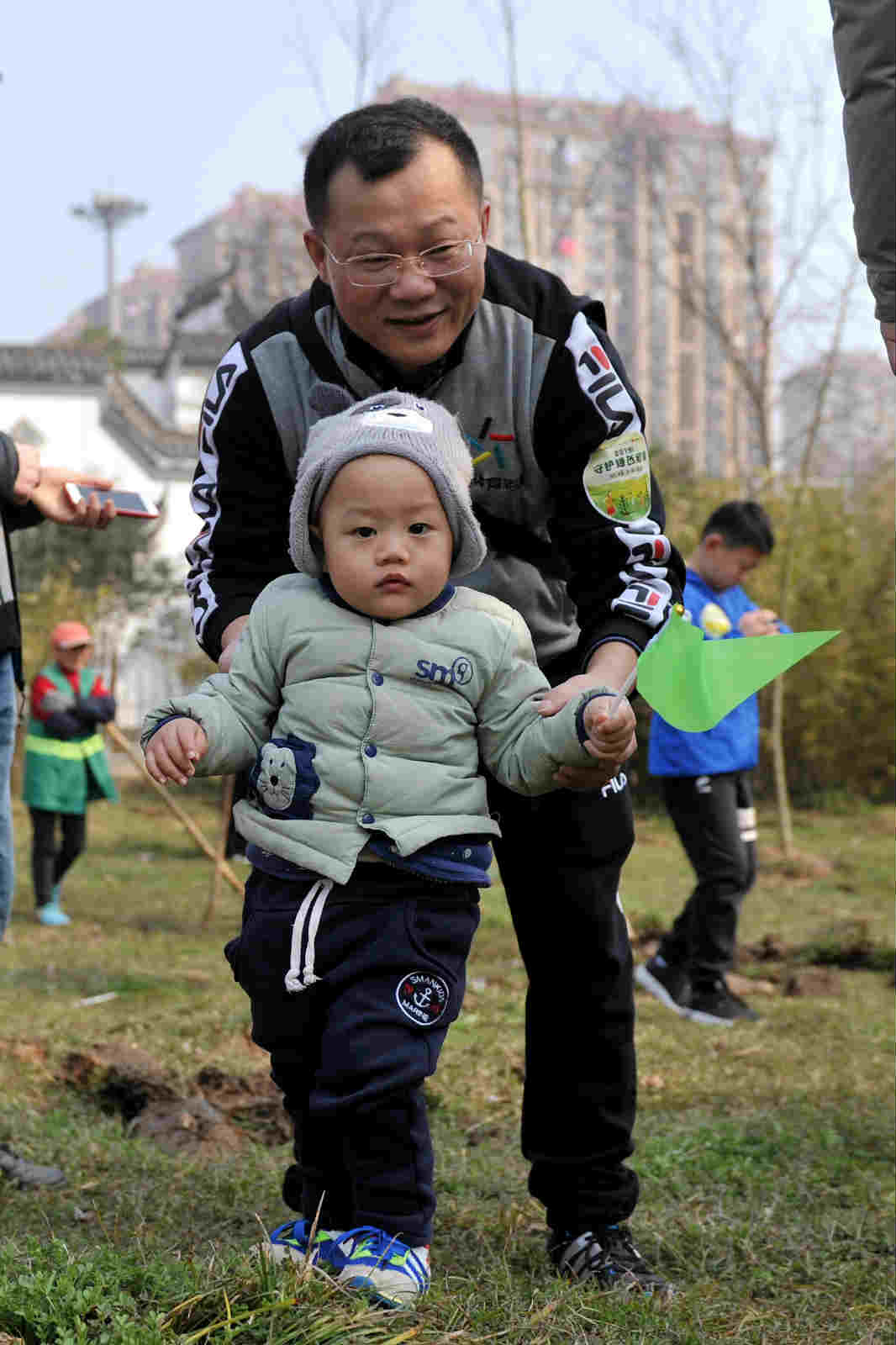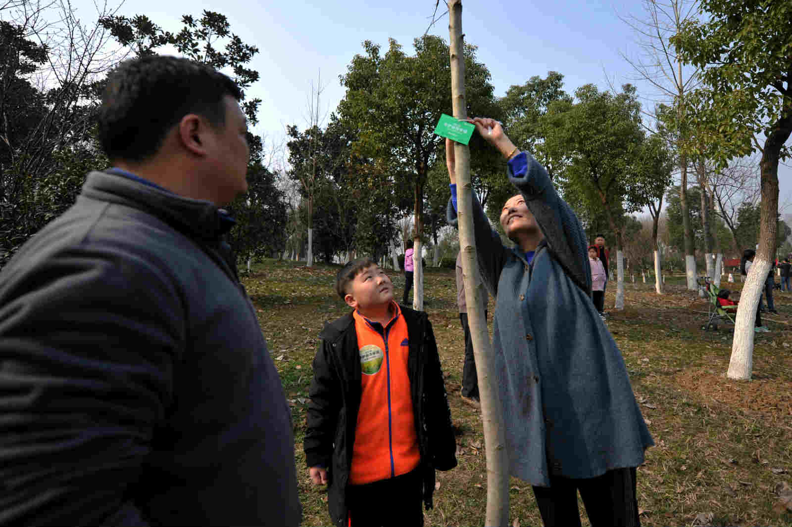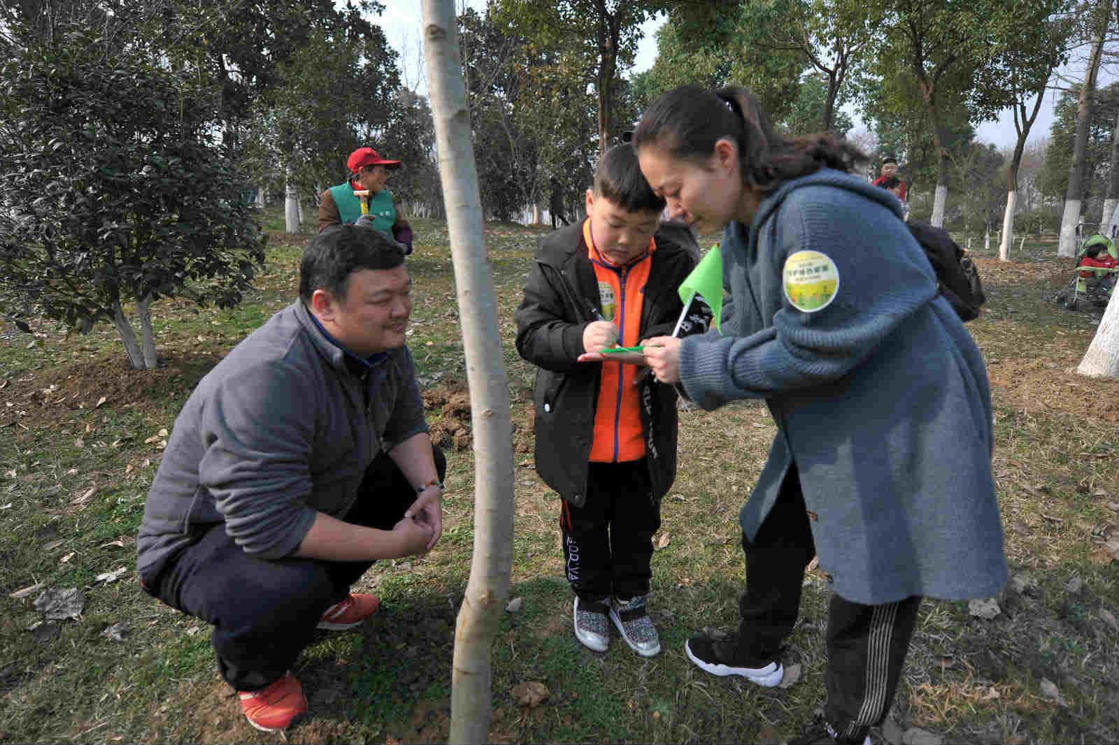 现场参加活动的市民很多是和自己的孩子一起,挖坑、铲土、浇水,栽上树苗,尽管鞋上沾满泥土,额头布满汗水,但孩子们脸上都挂着笑容,心里面也一定播下了绿色的希望。