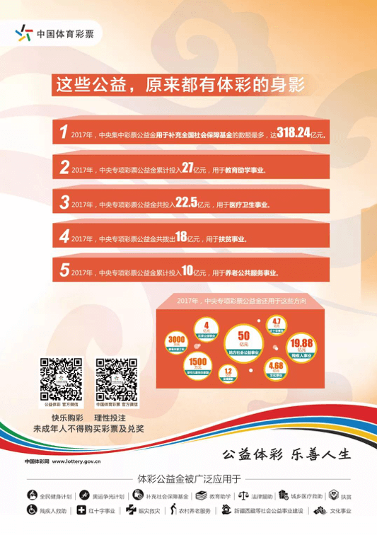 也就是说,只要你买了一注体育彩票,就为国家公益事业做出了贡献。