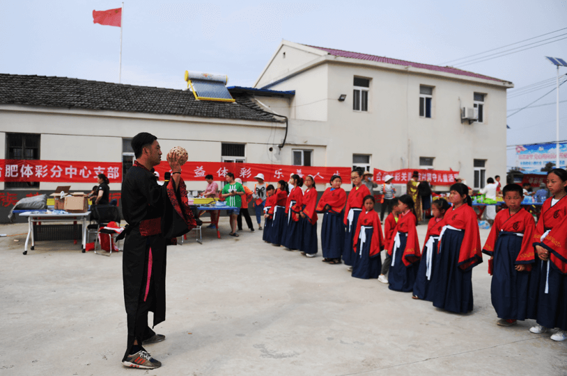 6月1日下午,在长丰县双墩镇海宝村“儿童之家”,16位留守儿童,都是第一次接触到了蹴鞠。