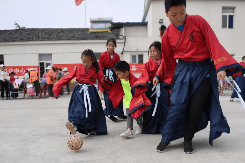 城里和村里的孩子分别组队开展蹴鞠比赛